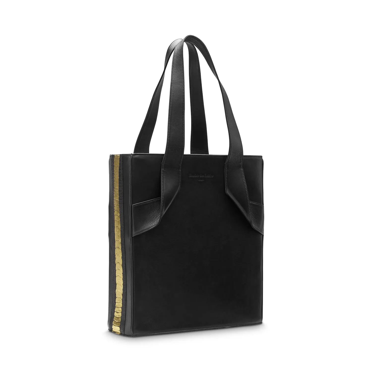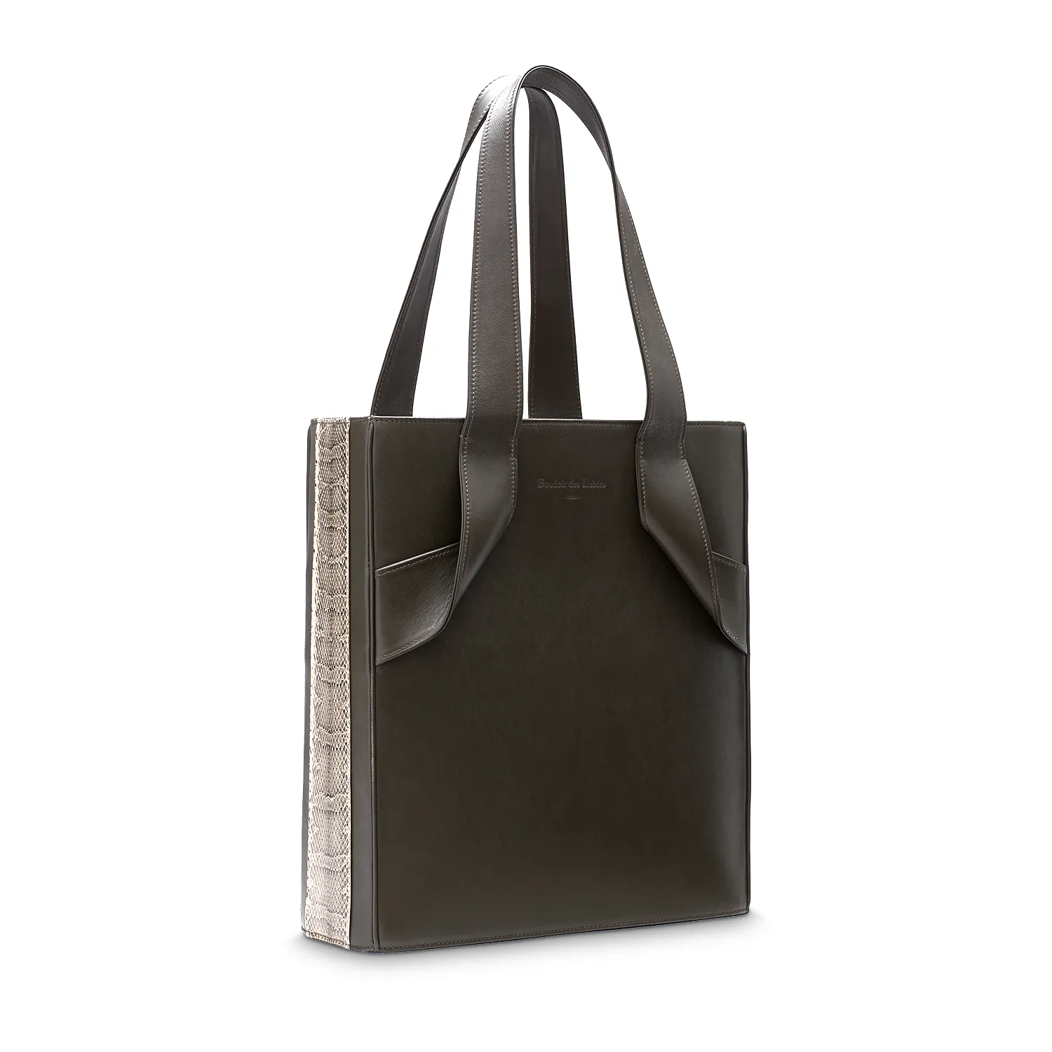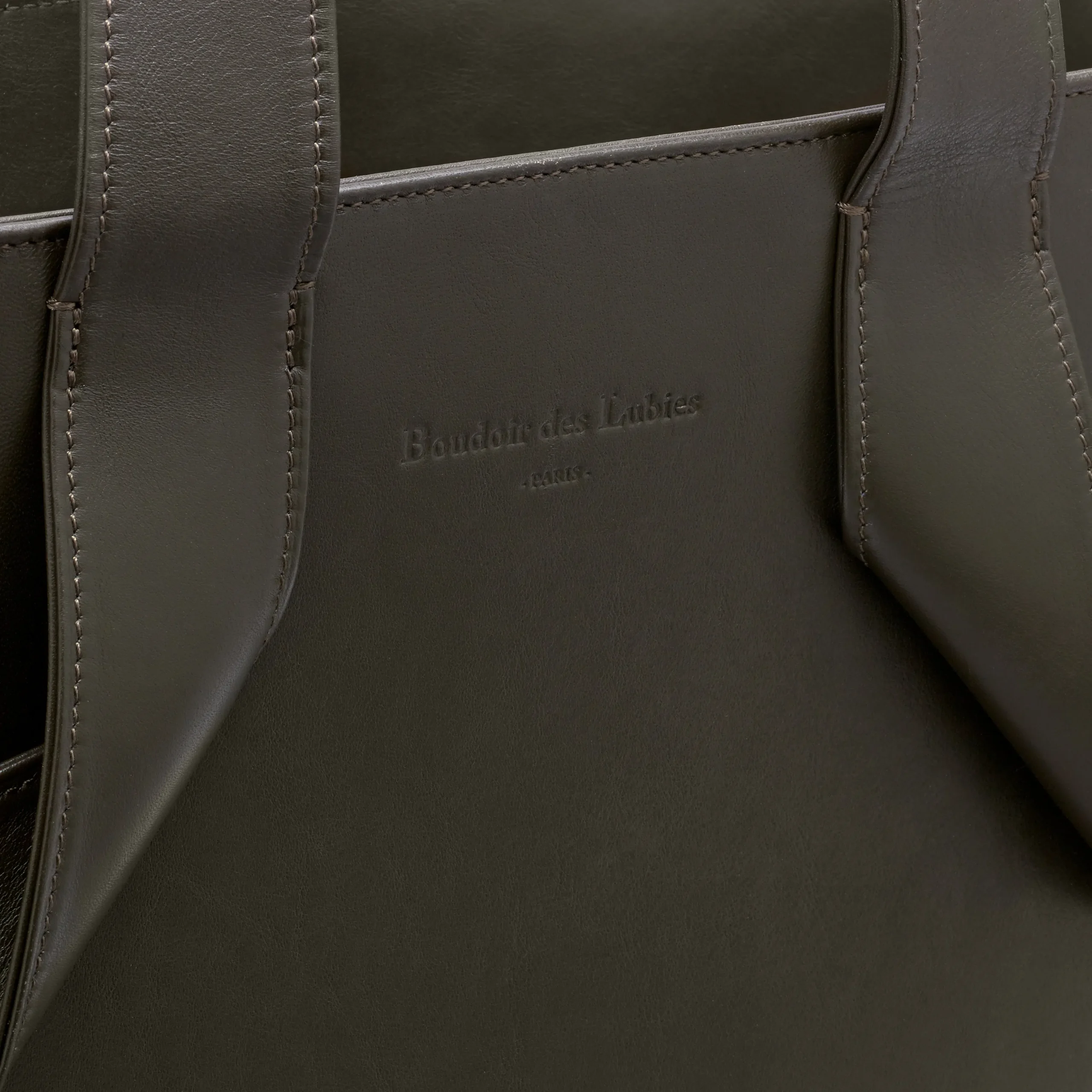 Une silhouette ample et sculpturale qui affirme un luxe contemporain. En cuir de veau haut de gamme, il se distingue par des détails d’exception — autruche peinte ou sea snake — qui soulignent son caractère. Fabriqué à la main dans des ateliers français, il allie fonctionnalité, tenue impeccable et sophistication assumée. Un sac de prestige, pensé pour celles qui veulent une présence forte et raffinée